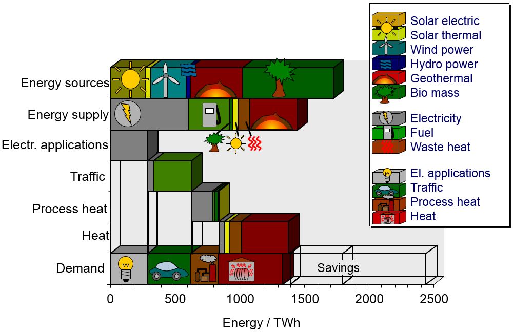 Eberhard Waffenschmidt and Wolf von Fabeck, It is technically and with reasonable effort possible to supply Germany to 100% with Renewable Energies, which are completely generated in Germany. There are several options available. Important is a mix of different forms of energy combined with with savings of energy. One of the possible scenarions is presented here. Es ist technisch mit vertretbarem Aufwand möglich, Deutschland zu 100% mit erneuerbaren Energien zu versorgen, die auch ausschließlich in Deutschland produziert werden. Dazu stehen mehrere Optionen offen. Entscheidend ist ein Mix aus verschiedenen Energieformen verbunden mit wirksamen Einsparungen von Energie. Eines der möglichen Szenarien wird präsentiert. Downloads > Presentation: PDF-Document